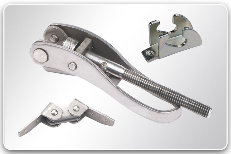 The fast connector for clamping rings, also called a quick release connector, is a mechanism that is adopted for the easy, secure, and fast assembling of clamping rings. The fast connector for clamping rings consists of a comfortable handle riveted with saddle parts for welding on the ring, 2 turning parts connected with an M6 bolt which is adjustable for clamping force. Auwell also produces the hinge parts for the closing side.